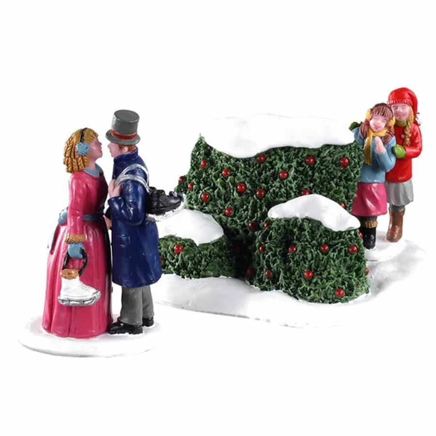 Il set è composto da due pezzi: la coppia di innamorati e le bambine nascoste dietro la siepe.