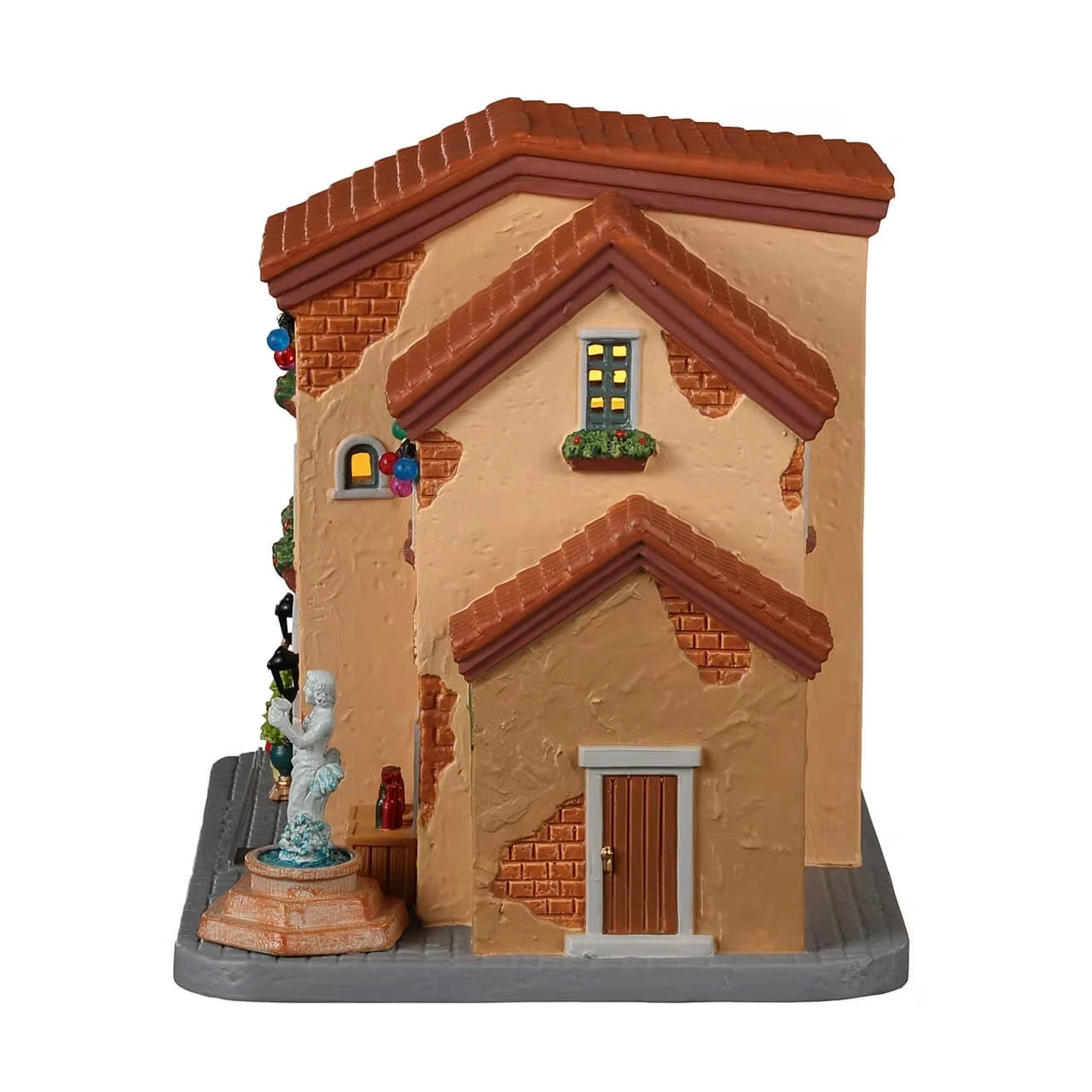 Questo mercante di vino ha una casa davvero affascinante! Una fontana classica zampilla all’esterno, fiori a botti decorano il marciapiede, il tetto è impreziosito dalle tegole e le pareti in terracotta sono abbellite dalle scritte.